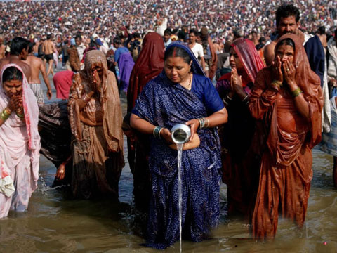 Only in India do we find the unique concept of an occasion when the saints and spiritual masters get together to remind the people that although we may be making material progress, but without a spiritual basis, humanity will not find peace of mind. It is a momentus occasion when the leading spiritual luminaries of the land make their presence felt and lay down edicts to guide man’s spiritual evolution in changing times. They address current ethical and moral issues and endeavour to influence the political and cultural streams of thought. The Kumbh Melas are held primarily at 4 places based on detailed astrological calculations : (1) When Jupiter and the Sun enter into the zodiac of Leo, the Kumbh Mela is organised on the banks of the River Godavari in Nashik (2) When the Sun enters into the sign of Aries and Jupiter enters into the sign of Aquarius the Kumbh Mela is organised at Haridwar. (3) When Jupiter enters Scorpio and the Sun into Capricorn the Kumbh Mela is organised at Allahabad or Prayag. (4) When Jupiter and the Sun both meet in Scorpio the Kumbh Mela is held at Ujjain. There are four types of Kumbhs: • Maha