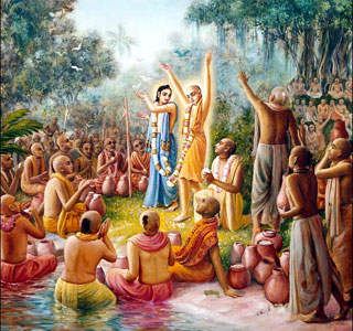In the village of Panihati, Raghunatha das obtained an interview with Nityananda Prabhu who was accompanied by many kirtana performers, servants and others.