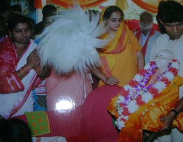 It was a hot scorching day on 1st May 2007, the festival of Sri Nrisingha Chaturdashi. As is done every year, the members of Bhubaneshwar Ashram were busy arranging things for the big puja. After the Hom and other rituals, around noon the main puja was about to start in the temple of the Lord. The deity of Baba was brought down from the bedroom and taken to his Samadhi for a while.