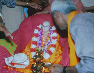 From the Samadhi, Nepal then brought Baba to the mandap in the temple and seated Him on a sofa.