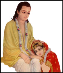 After Vishnupriya-devi’s disappearance her cousin took the deity to his house. At that time he was living on the eastern side of the Ganga. Later on when his house was washed away by the Ganga he moved to Kuliya-grama on the western side of the Ganga. This Kuliya-grama is known today as the town of Navadvipa. As Sri Gauranga Mahaprabhu was the son-in-law of this family, they still to this day worship the deity as their son-in-law. Just as Bhagawan Ramachandra, who had taken the vow of monogamy, had a golden statue of Sita devi made after Her exile to the forest, rather than marry a second time, so Vishnupriya repaid her debt to her Lord in the pastimes of Gaura-Narayan by having an image of Mahaprabhu created so she could perform the sacrifice of the Holy Name to Him. The image of the deity she installed and worshipped is given here. This deity is worshipped to this day in Navadvipa. Srila Bhaktivinoda Thakura relates the following pastime in his Sri Navadvipa-Dhama-Mahatmya: During his exile in the forest for 14 years, Lord Rama visited Ramkeli, Gangasagar and Navadvip areas of Gaud desa. Once as Lord Rama was observing the extraordinary beauty of the forest, He began to smile. Sita asked Him why He was smiling, and Sri Rama replied, "In this forthcoming Kali-yuga, I will take birth from the womb of Mother Sachi in Sri Jagannatha Mishra's house in this same Navadvipa-dhama. People will know Me as Gauranga, and I will charm everyone by performing a variety of enchanting pastimes. I will manifest the glory of the Holy Name and thus madden the common people with the chanting of these names. I will change the hearts of even hardened sinners and give them love of God, which even the demigods rarely attain. In My youth I will accept sannyas, after which I will reside in Sri Jagannatha Puri. At that time My mother Sachi-devi, who is none other than Kausalya, will weep holding her daughter-in-law Visnupriya in her arms. You will be that Vishnupriya. I will thereafter remain in Puri and will also weep for you day and night". By her devotion and austerity, Sri Vishnupriya Devi, played a very important role in the spread of Gaudiya Vaishnavism. Through her acceptance of the mood of separation, her surrender to her Lord's mission, her manifesting pangs of separation, she helped in establishing the ideal of union in separation, the cornerstone of Gaudiya Vaishnava philosophy. She melted the hearts of many and did away with the jealousy or antagonistic feeling toward Mahaprabhu that many people harboured at the time. And thereby in Bengal she facilitated the preaching of Nityananda Prabhu and the glorification of Sri Chaitanya Mahaprabhu. Sri Sri Vishnupriya devi ki jai !! Sri Sri Gauranga Mahaprabhu ki jai !! JAI JAI SRI RADHEY !! JAI GURU !!
