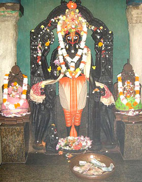 in Satya Yuga, Lord Brahma worshipped Lord Vishnu here on top of a hill. One day Lord Vishnu appeared and said, "I am very pleased with your worship. Make a four-armed Deity of Me holding shankha, chakra, gada, and padma (conch shell, disc, club, and lotus). The Deity should be made from a single piece of black stone. Also install a deity of Garuda". Lord Vishnu also said, "This place will be called Brahmagiri (Brahma's hill) because you have worshipped me here"